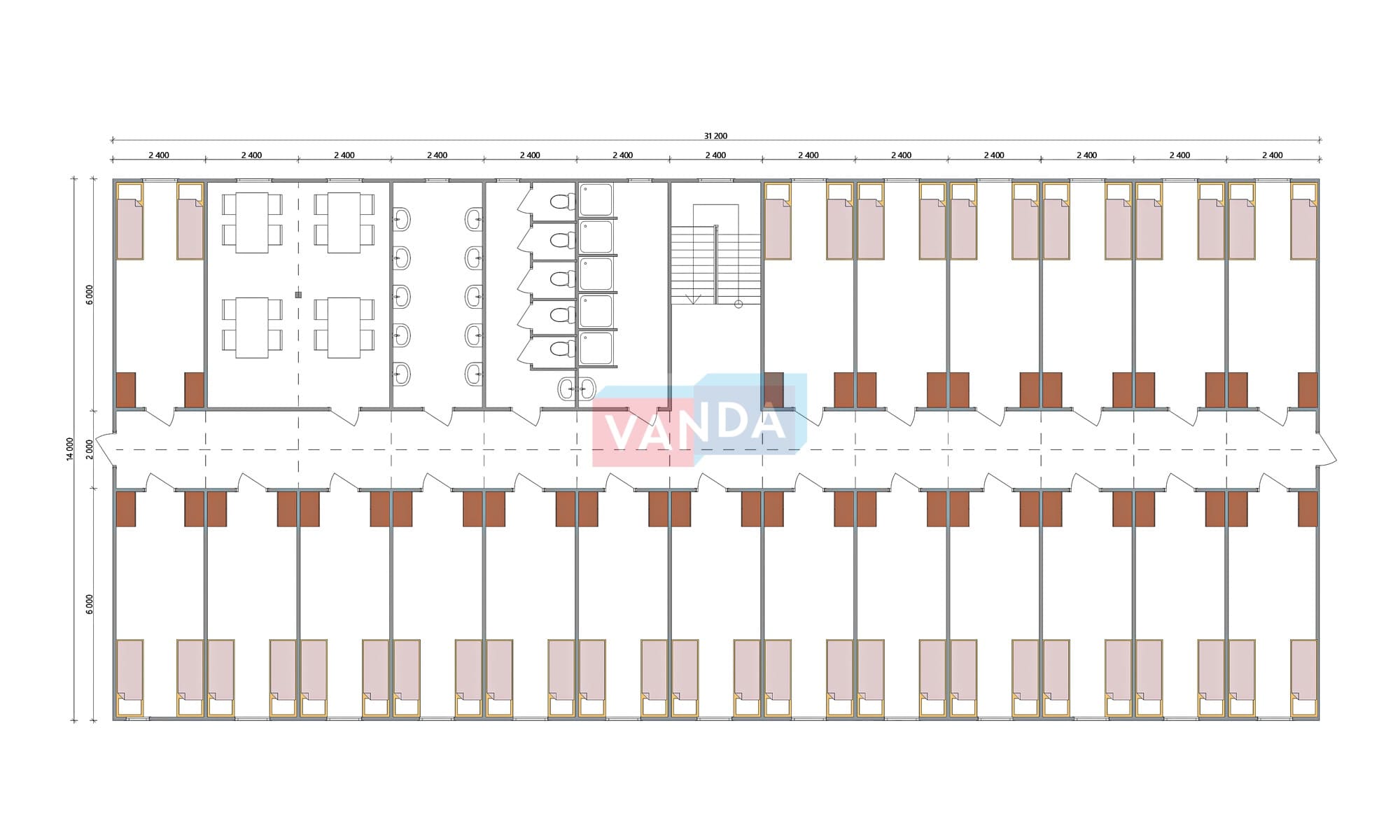 Проект вахтового посёлка 14.0х31.2 14.0x31.2 873.6 OSB 9 мм. Оцинкованный профлист 20 640 000 р. Уточняйте у менеджера